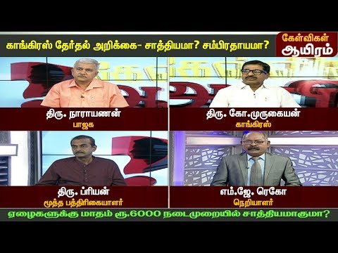 #KelvigalAayiram #JayaPlusKelvigalAayiram ஏழைகளுக்கு மாதம் 6000 நடைமுறையில் சாத்தியமாகுமா? நீட் தேர்வு ரத்து பற்றிய அறிக்கை தெளிவற்ற முறையில் இருக்கிறதா? விவசாயக் கடன்கள் ரத்து பற்றி அறிக்கையில் குறிப்பிடாதது ஏன்? கோடிக்கணக்கான வேலைவாய்ப்புகளை உருவாக்க இயலுமா? சுகாதாரத் துறையை மேம்படுத்த காங்கிரசின் செயல்திட்டம் போதுமானதா? பெண்களுக்கான 33% இட ஒதுக்கீடு அறிவிப்பு கபட நாடகமா? Facebook - https://ift.tt/2PQBJdJ Twitter - https://www.twitter.com/jayapluschannel Website - www.jayanewslive.com